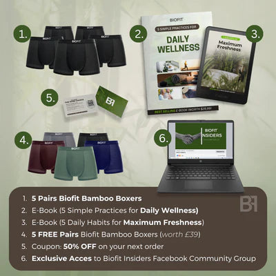 BIOFIT® Bamboo Boxers 5-Pack Green | + 5 FREE